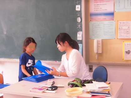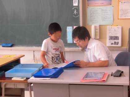 担任が一人一人に1学期のがんばりを伝えました。