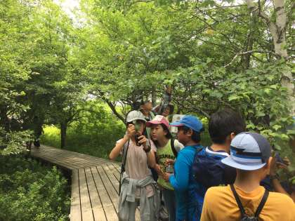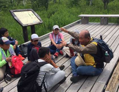 自然をいっぱい楽しみながらのハイキング。めずらしい植物や生き物も教えていただき、ゆったりした時間を過ごしています。