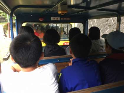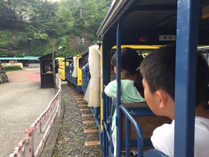 足尾銅山でトロッコに乗りました。ゴトゴトとゆっくり走るトロッコ体験に大喜びの子供たちです。