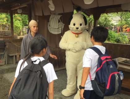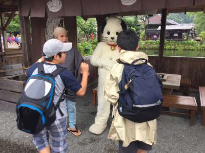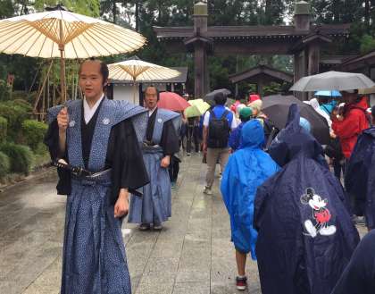 日光江戸村に着きました。雨具が必要な天気ですが、開門と同時に江戸の雰囲気に包まれました。江戸の町を楽しみます。