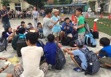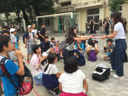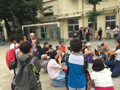 帰校式が終わると学級ごとに集合。この夏で転出する友達にメッセージと拍手をおくりました。すてきな光景です。