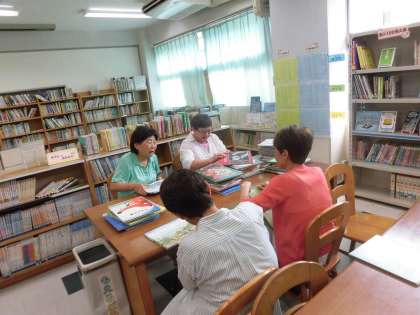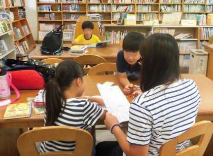 学校図書館の開放も7日間予定しています。学校の教員・図書館に関わる事務員のほか、図書委員会の子供たち、地域の皆様、保護者の皆様もご協力をいただいています。読書に親しむ子供たちを見守りながら、本の修理なども行っていただいています。親子で学校図書館を活用して勉強・・・そんな姿も見られました。学校図書館開放日は、7月24日、7月26日、7月28日、8月22日、8月24日、8月25日、8月29日の7日間です。本に関心のある子供たち、ぜひ活用してみてください。