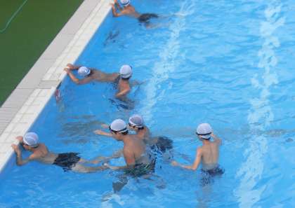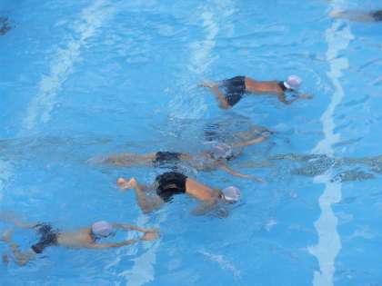 ここ数日、天気が安定しない日もありましたが、一生懸命に夏季水泳に通い、がんばっている子がたくさんいます。最初に平泳ぎの練習をしました。友達と足の動きを確認し合いながら練習を重ねていきます。この積み重ねが大きな力になります。まだまだ学校の水泳指導は続きます。たくさん泳いで、自分の目標達成を成し遂げてほしいです。