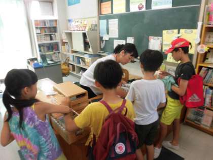 今日は、学校図書館開放日でした。水泳指導の前後に学校図書館を活用する子が増えてきました。夏休みにすでに10冊以上本を借りた子もいます。夢中になって本の世界に入り込んでいる子もいます。宿題に取り組む子もいます。図書委員会の子供たちも参加して先生たちと図書室の整備に取り組みました。地域の皆様が本の修理をお手伝いしてくださいました。限られた日数の開放ではありますが、開放日にはぜひお立ち寄りください。