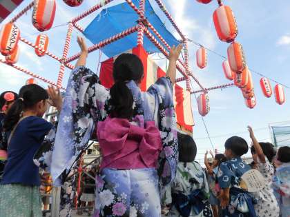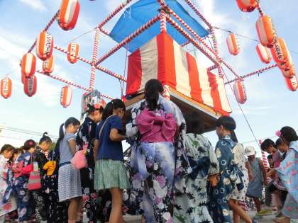 3日目の池ノ上納涼盆踊り大会・・・子供たちがたくさん集まって、のびやかに池ノ上音頭を踊りました。運動会でも踊る池ノ上音頭。みんなとても上手です。