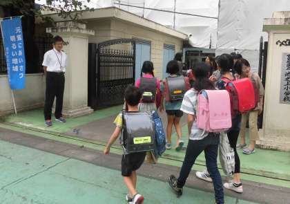9月1日、長い夏休みを終え、2学期がスタートしました。子供たちが宿題の作品を大切に手にしながら、元気に明るい笑顔で登校してきました。2学期の1日目を地域の皆様・保護者の皆様が迎えてくださいました。2学期のあいさつ運動の取り組みです。元気な「おはようございます」ではじまった2学期、子供たちのがんばりが、また、ここ池之上小学校で繰り広げられます。輝く笑顔いっぱいの池之上小学校を目指していきます。