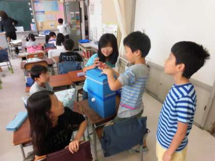 夏の自由課題学習、子供たちの力作がそろいました。どの子も自分の作品を大切にしている様子が見られます。「先生、見てね。こんなとろこをがんばったんだよ。」と声をかけてくれる子がたくさんいました。友達のがんばりを認め合う姿もありました。がんばったところをカードに書きました。3枚目の写真は先生から説明されたカードの書き方をしっかり聞いている様子です。この後、それぞれの担任は、夏休み作品展としてご覧いただけるよう準備をしていきます。