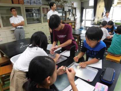 5年生の理科の授業の様子です。先生から基礎的な内容について説明がありました。みんな真剣に聞いています。確認した知識を活用して、グループで実験観察を行いました。学習課題を解決するために友達と話し合うこと、具体物を活用して実際に検証してみることはとても大切なことです。顕微鏡の使い方も繰り返し学習しています。