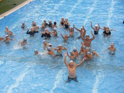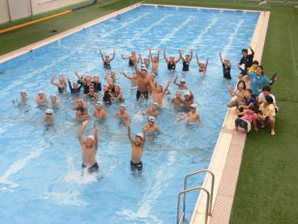 水泳記録会終了後は、6年生の子供たちが卒業アルバム用の集合写真を撮りました。どの子もすてきな笑顔です。ポーズをとる姿からチームワークの良さも伝わってきました。