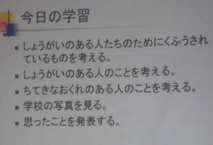 9月13日、青光学園との交流活動が行われました。今日は、青光学園での学習の様子や生活の中で工夫されていることなどを学びました。今日の先生は、青光学園の5年生の担任の先生です。4年生はこれから2回ほど、青光学園を訪問し、交流活動を進めていきます。