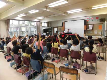 今日から新しい音楽の先生との授業がはじまりました。先生が「ドレミの歌」に合わせて、歌で自己紹介しました。子供たちの名前も「ドレミの歌」に合わせて呼名。「よろしくお願いします」とあいつさを交わした後は、みんなで元気に「ドレミの歌」を歌いました。2学期の音楽の授業が充実していくことを願っています。子供たちの美しい、そして元気な歌声が響きわたる学校を目指しています。