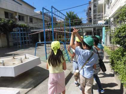 2年生が代田図書館に見学に出かけました。地域の図書館の様子を実際に目で見て学びます。運動会で使ったバンダナをかぶって出かける2年生、とてもかわいらしかったです。たくさんの学びの時間になるようにしようとみんなで確認し合いました。校庭で体育をしている1年生の「いってらっしゃい」の声に、手を振りながら「行ってきます」とあいさつする2年生。あいさつも目標の一つになりました。「よろしくお願いします」「ありがとうございました」と駅員さんや図書館の人たちにあいさつを交わすことがとても上手にできました。駅でのマナーもしっかり守って行動できました。