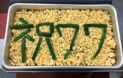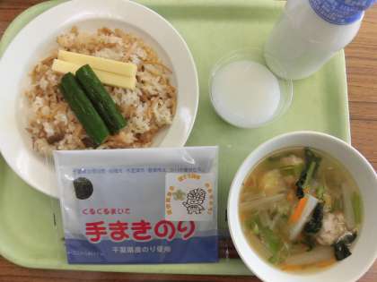 子供たちが楽しみにしている給食の時間になりました。食缶のふた開けると、お誕生日のサプライズが・・・子供たちから歓声が上がりました。のりの袋、一人一人にもお誕生をお祝いするシールが貼られました。今日1日、池之上小学校の77歳のお誕生日をお祝いする気持ちが盛り上がりました。「池之上小学校 77歳 おめでとう!」