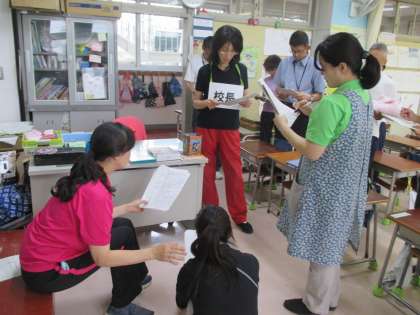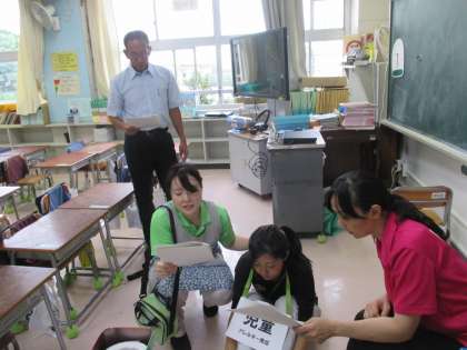 9月20日、学校保健に関する教職員研修が行われました。この日は、これから流行の時期を迎える感染性胃腸炎への対策、AEDを使用した救急対応の確認、食物アレルギーによるアナフィラキシー症状発生時のシミュレーションを行いました。教職員がそれぞれの立場から、児童が安心・安全な学校生活を送るサポートができるよう、これからも定期的に研修を行っていく予定です。
