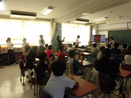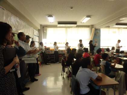 今年度は、外国語活動の授業の充実を目指して、授業研究の機会をたくさん設けています。高学年部会で計画した授業を、多くの教員が参観し、よりよい授業を作り上げていくために協議を行いました。これからも池之上小学校では、質の高い「授業」を大切にしていきます。