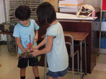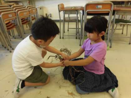友達と声をかけ合い、助け合い、励まし合い、リースづくりに挑戦する1年生のすてきな姿がたくさん見られました。片付けも自分たちでしっかり取り組みました。これから飾りつけを行います。できあがりが楽しみです。