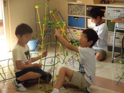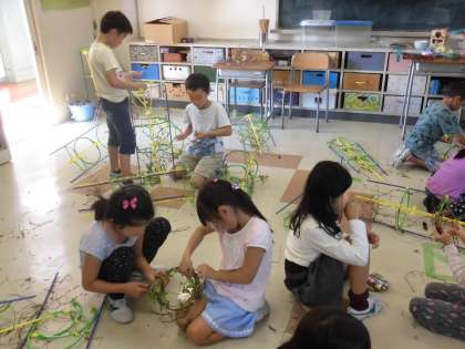 5月から大切に大切に育てたアサガオ。1年生の子供たちは毎日一生懸命に水やりのお世話をしてきました。夏休みもおうちで心を込めて育てました。秋になり、種が実り、命のバトンタッチの準備もはじまりました。種の収穫後は、アサガオのツルでリースを作ります。これまで可憐な花を咲かせてきたアサガオを思い出しながら、ツルをほどき、まるめていきました。