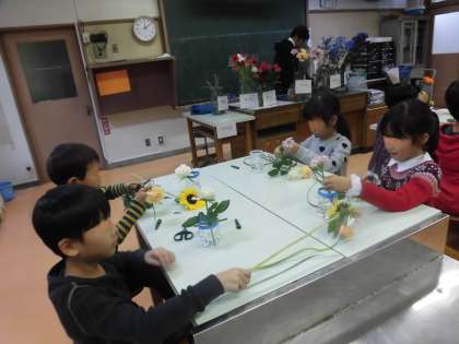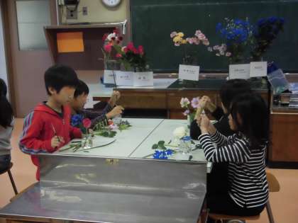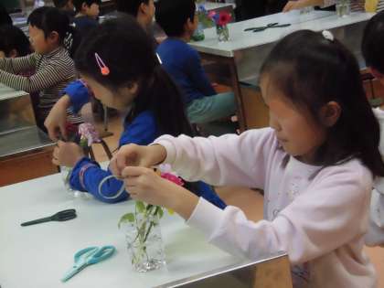 子供たちの豊かな表情をお伝えできないことがとても残念ですが、みんな真剣なまなざしでお花に向き合っていました。夢中になって取り組む表情がとてもすてきでした。