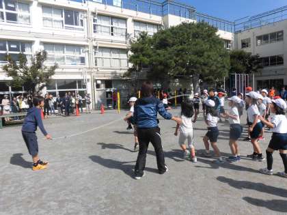 2年生のがんばりです。練習の時から5年生が補助に入りました。2年生の跳び方に合わせて縄を回すタイミングを整えていることが見ていてよくわかりました。心あたたかい5年生たちに感動しました。