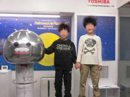 静電気が起きる実験を、友達と手をつないで楽しみました。