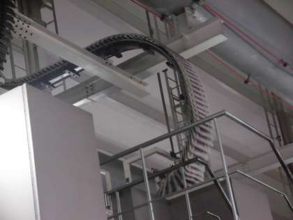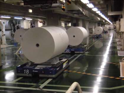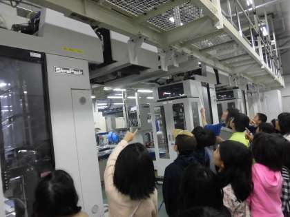 紙を運ぶロボットや刷り上がった新聞を見て感動する子供たち。新聞工場の様々な工夫に驚いていました。