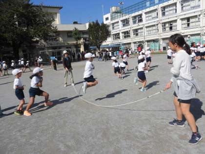 10月26日、1・3・5年生のながなわ大会が行われました。雨で延期になりやっと迎えた大会当日。子供たちの気合を朝から感じました。写真に撮ると、一見同じような動きに映ってしまう長縄跳びですが、子供たち一人一人の表情やフォームを見ていると、これまでの練習の様子が浮かんできて感動の気持ちでいっぱいになります。真剣なまなざしでいっぱいです。1年生も、初めてのながなわ大会、ほんとうによくがんばりました。