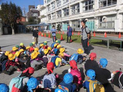 すでにこのホームページで1・2年生の遠足を紹介していますが、改めて子供たちのすてきな一コマをお伝えしたいと思います。遠足のスタートは先生のお話をしっかり聞くことからはじまりました。楽しい遠足にも約束があります。そのことを子供たちが受け止めます。学校の先生たちや警備さんに「いってきます」と大きな声であいさつを交わして、池ノ上の駅に向かいました。