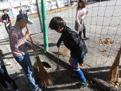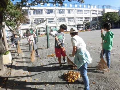 10月30日から、毎年実施している「なかよし班」による落ち葉掃き活動がはじまりました。初めて体験する1年生も、お兄さんやお姉さんから優しく教えてもらいながら落ち葉掃きをがんばりました。秋の深まりを感じながら行う落ち葉掃きを通して、自然や学校を大切に思う心を育てていきたいと思っています。
