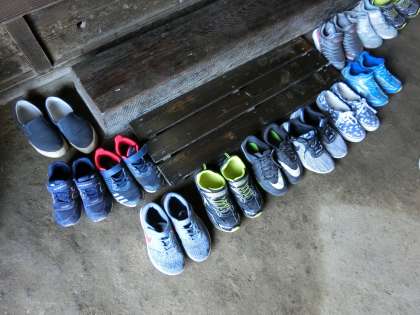 子供たちはとてもお行儀よく説明を聞いたり質問をしたりしていました。くつもしっかりそろえています。