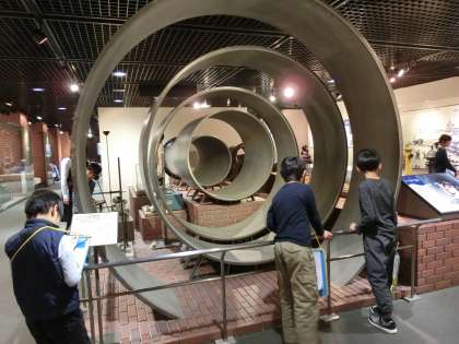 自由学習の時間もみんなとっても熱心にメモを取ったり、資料を見たりしていました。大きなトンネルの中に水道管を敷設することも学びました。日本最大級のトンネルは3メートル近くあります。このトンネルは主にダムに水を集めるときに使われるそうです。大きなトンネルに子供たちも驚きながらも熱心に見学していました。