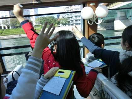 浅草の町からスカイツリーが大きく見えました。子供たちは、社会科見学をとても楽しみにしていたようです。手を振る姿や大きな声であいさつする姿から子供たちの心が伝わってきました。