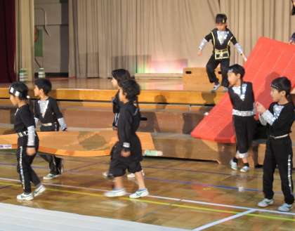 舞台の上だけでなく、様々なところで活躍する子供たち。高学年は照明や音楽も自分たちで担当します。1年生も舞台の大道具を自分たちでセッティングしたり片づけを分担したりします。どの学年も子供たちの力が劇を支えます。学芸会当日も様々な場で活躍する子供たちを見ていただくことができると思います。