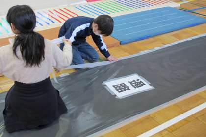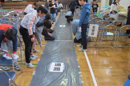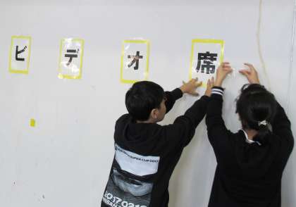 明日の学芸会(保護者の皆様・地域の皆様への発表)を成功させるための会場準備です。学芸会では、子供たちが会場いっぱいに演技したり、大道具などを運んだりします。そのためのスペースを確保させていただきました。通路をつくる6年生、進んで積極的に会場づくりに向かっていました。