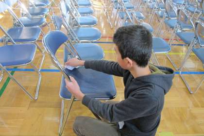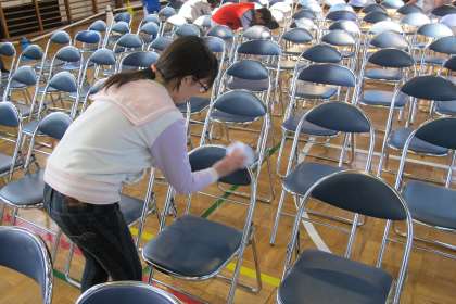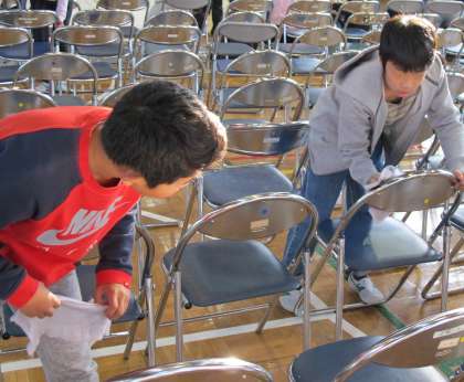 皆様に座っていただくイスもていねいにふきました。