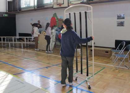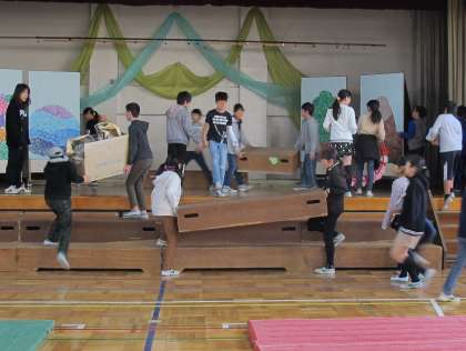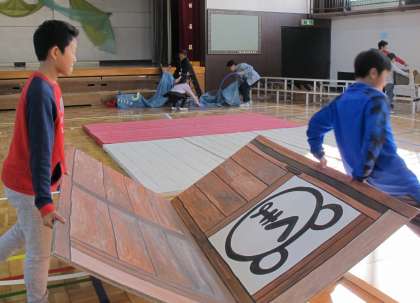 大道具を所定の位置に運びました。学芸会をスムーズに運営するためには、この大道具等の出し入れがとても重要になります。順番や取り出しやすさを考えました。