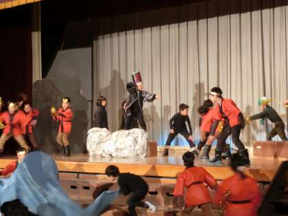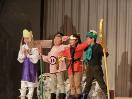3年生の演じた孫悟空の世界・・・自分が強いと自信満々の孫悟空をはじめ個性あふれる役を見事に演じた表現力のすばらしさに感動しました。劇の世界に引き込まれ、何度見ても孫悟空の世界を楽しむことができました。元気いっぱいの歌の中で演じるコミカルな動きも印象的でした。体いっぱいに表現した3年生のみなさん、すてきな劇をありがとう。