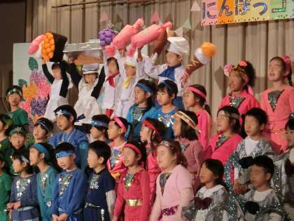 1年生のかわいらしさ元気さがたくさん表現できた劇になりました。大きな声を出すことができました。動作も自分たちで考えました。そして、心ひとつにして歌った元気な歌声で劇を盛り上げました。1年生の劇を見ていると、元気いっぱいの気持ちになりました。1年生のみなさん、すてきな劇をありがとう。