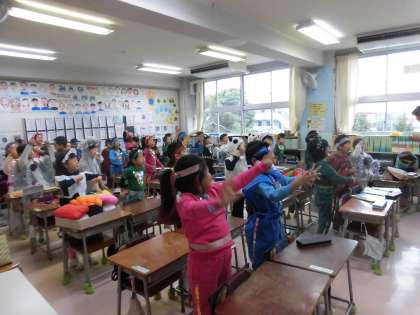 11月17日・18日の学芸会・・・大成功に終わりました。みんながんばりました。子供たちの努力に大きな拍手をおくりたいと思います。写真は当日の朝の様子です。子供たちのはりきった思いが伝わってくる一コマです。朝の会、いつも行っている健康観察のときでさえ、いつにも増した「はい!」と堂々とした大きな声。「今日はがんばるぞ」と、そんな思いが元気な力いっぱいの声に表れていました。大道具も自分たちで作り上げました。このあと、ほんの一部ですが、学芸会の様子を写真で紹介いたします。子供たちのすてきな姿がいっぱいです。