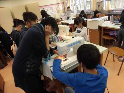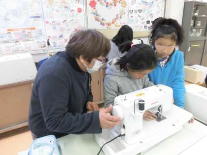 ミシンの使い方だけでなく、袋作りのアドバイスもいただきました。子供たちにとっては心強い支援になりました。子供たちの活動が充実するために見守っていただきありがとうございました。