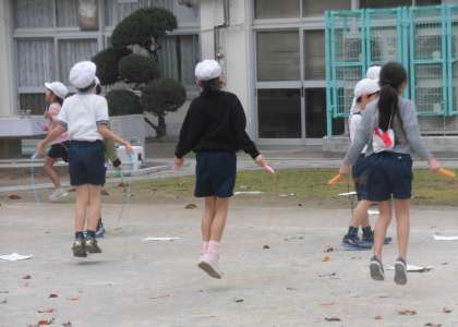 なかよし班でなわとび練習