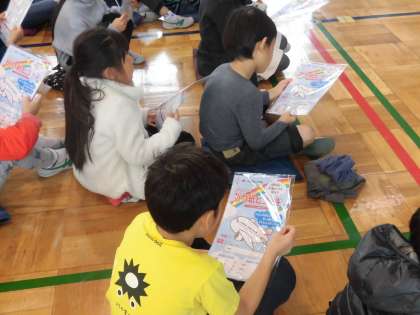 あいさつが終わったら、いよいよ折り紙ヒコーキ作りに挑戦です。