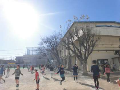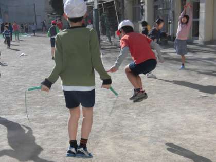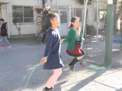 冬の寒さを吹き飛ばすくらい元気な子供たち。なわとびタイムに力いっぱい取り組む子がたくさんいます。なわとびカードを見ながら新しい技に挑戦しています。毎日寒い日が続きますが、青空が広がる日は太陽のぬくもりをたくさん感じることができます。太陽に負けないくらい子供たちのがんばりが光り輝いています。