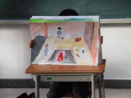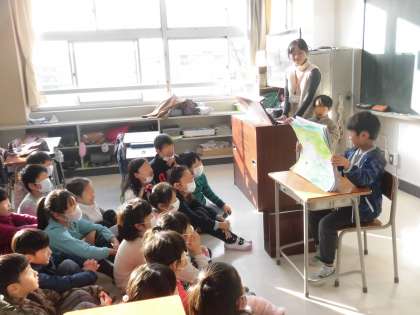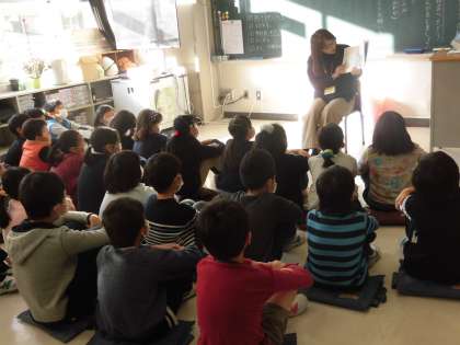 子供が作った手作り紙芝居で、子供自身が読み聞かせをしている学級もありました。日本の昔話です。保護者の方は、お話の世界にぴったりと合ったBGMをオルガンで弾いてくださいました。すてきなひとときになりました。2学期もたくさんの皆様に読み聞かせをしていただきました。いつもほんとうにありがとうございます。