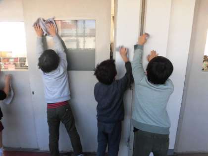 教室のドアもきれいに拭き掃除しました。ごみは分別することも忘れません。友達と協力して机運びをするすてきな姿もたくさん見かけました。