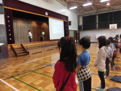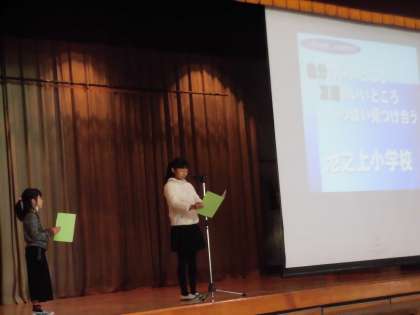 終業式では、代表の子供が2学期を振り返って、自分の成長の様子やがんばったことを皆の前で述べました。時間を意識して行動したことや、苦手なことも一生懸命に努力を続けがんばったこと、仲間と力を合わせてやり遂げた充実感などを、しっかり発表することができました。ここにいるすべての子供たち一人一人の心に、それぞれ違った自分の成長が思い描かれたことでしょう。節目節目の振り返りはとても大切なことです。3学期に生かすことができるすてきな振り返りの時間となりました。終業式最後に、生活指導担当教員より「あいさつ」の大切さについて話がありました。冬休みは、たくさんの方々とお会いする機会があると思います。元気にあいさつが飛び交うすてきな冬休みになりますように・・・