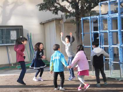 2学期の終わりころから「花いちもんめ」を楽しむ子供たちが増えてきました。今日も元気な歌声が校庭から聞こえてきます。「勝ってうれしい花いちもんめ 負けて悔しい花いちもんめ・・・」仲良く遊ぶ子供たちには笑顔がいっぱいです。