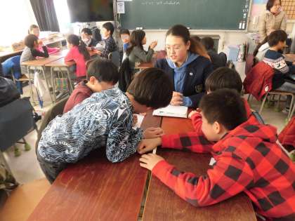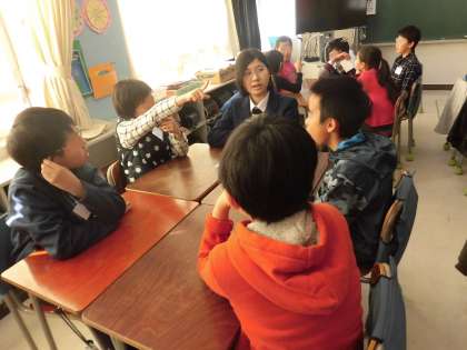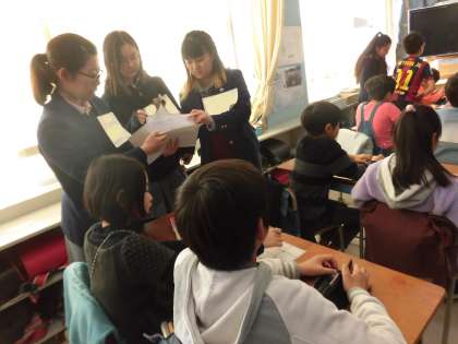 4年生は、ニュージーランド・アメリカなどの国について学びました。子供たちの活動を高校生たちが優しく見守りました。