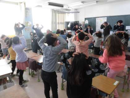池之上小学校では、国際理解の推進として、年2〜3回程度近くの都立国際高等学校の生徒の皆さんとの交流活動を行っています。1月13日に第1回目の活動を行いました。たくさんの国の文化を、たくさんの資料を提示しながら楽しく教えてくださいました。交流活動をする子供たちの顔・・・小学生も高校生も輝いていました。