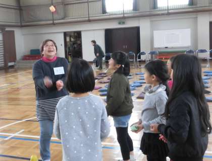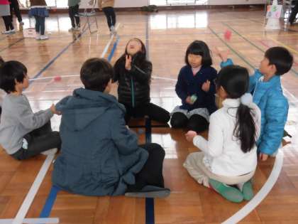 お手玉の様子です。地域の方にたくさん教えていただきました。子供たちはどんどん上手になっていきました。