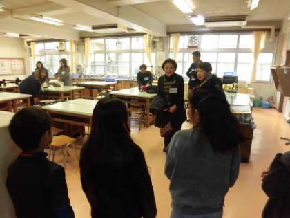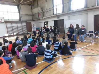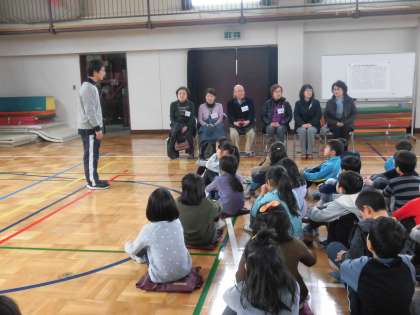 1月19日、2年生が「むかしあそび交流会」を行いました。この会には、地域の皆様がたくさん子供たちの応援に駆けつけてくださいました。たくさんの昔遊びを一緒に楽しみます。代表の子供が家庭科室から体育館までご案内し、お迎えの会を立派に開きました。よろしくお願いしますの礼を丁寧にして、交流会が始まりました。